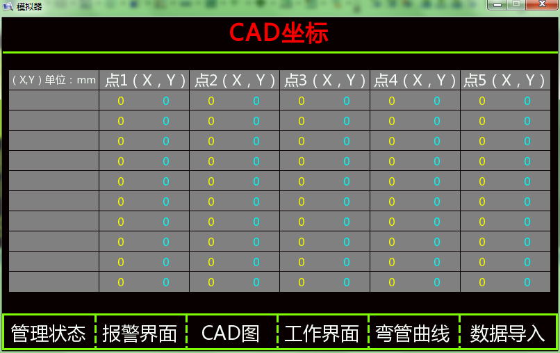 支持彎管曲線顯示(如圖5所示)與CAD坐標導入(如圖6所示)功能。